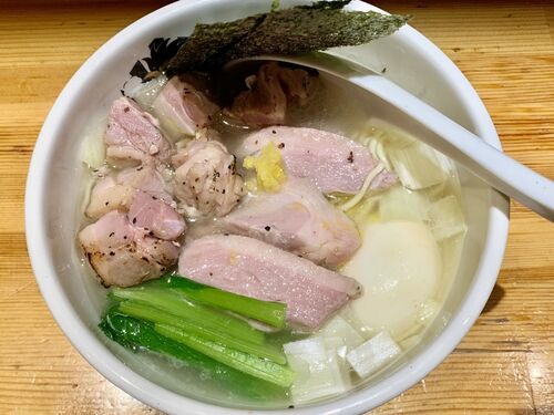 昨年末に行って感動した真鯛らーめん麺魚のセカンドブランド、満鶏軒へ。 40分以上並んで入店。 特製鴨中華そば 生姜醤油(1,150円)。連れの注文。生姜が主張し過ぎてオレの好みでは無い。 特製鴨中華そば 塩(1,150円)。オレの注文。鴨と水だけで作った出…