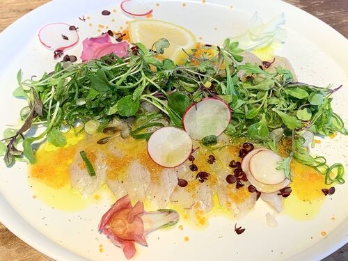 今日は暖かいので、オープンテラス席で日も暮れぬうちから呑み始める体たらく。 キリンブラウマイスター。生ビールって、こんなに美味かったのか! 鮮魚のカルパッチョ。今日の魚は訊かなかったけど、たぶん鮃だと思う。津本式血抜きを施しているから身の状…