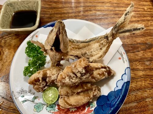 宮古島3日目の夜メシは、店内に大きな生簀のある海の幸へ。 土曜日なのでタクシーが捕まらず20分以上歩いて汗だくなので生ビールから。お通しのゴーヤスライスが美味い。 入店時にラストオーダー30分前だったので忙しなく泡盛へ移行。銘柄不明の一択。 とり…