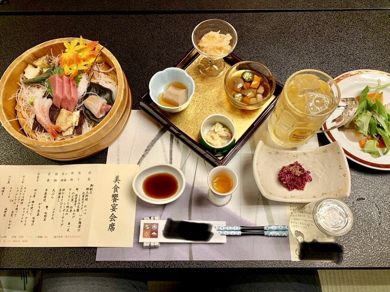 庶民価格の旅館なので、メシのレベルはあまり期待していなかったけど、一生懸命さが伝わって来る料理の数々と、強烈に濃いハイボールにテンションが上がる。