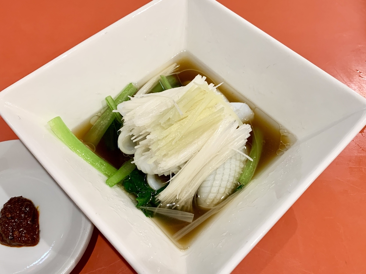 広東風イカの湯引き。言い方は悪いが下町ど真ん中の地元民御用達の町中華で、こんなに繊細な料理に出会えるとは!お銀座で出てきても全く違和感が無い仕事。猛烈に美味い。